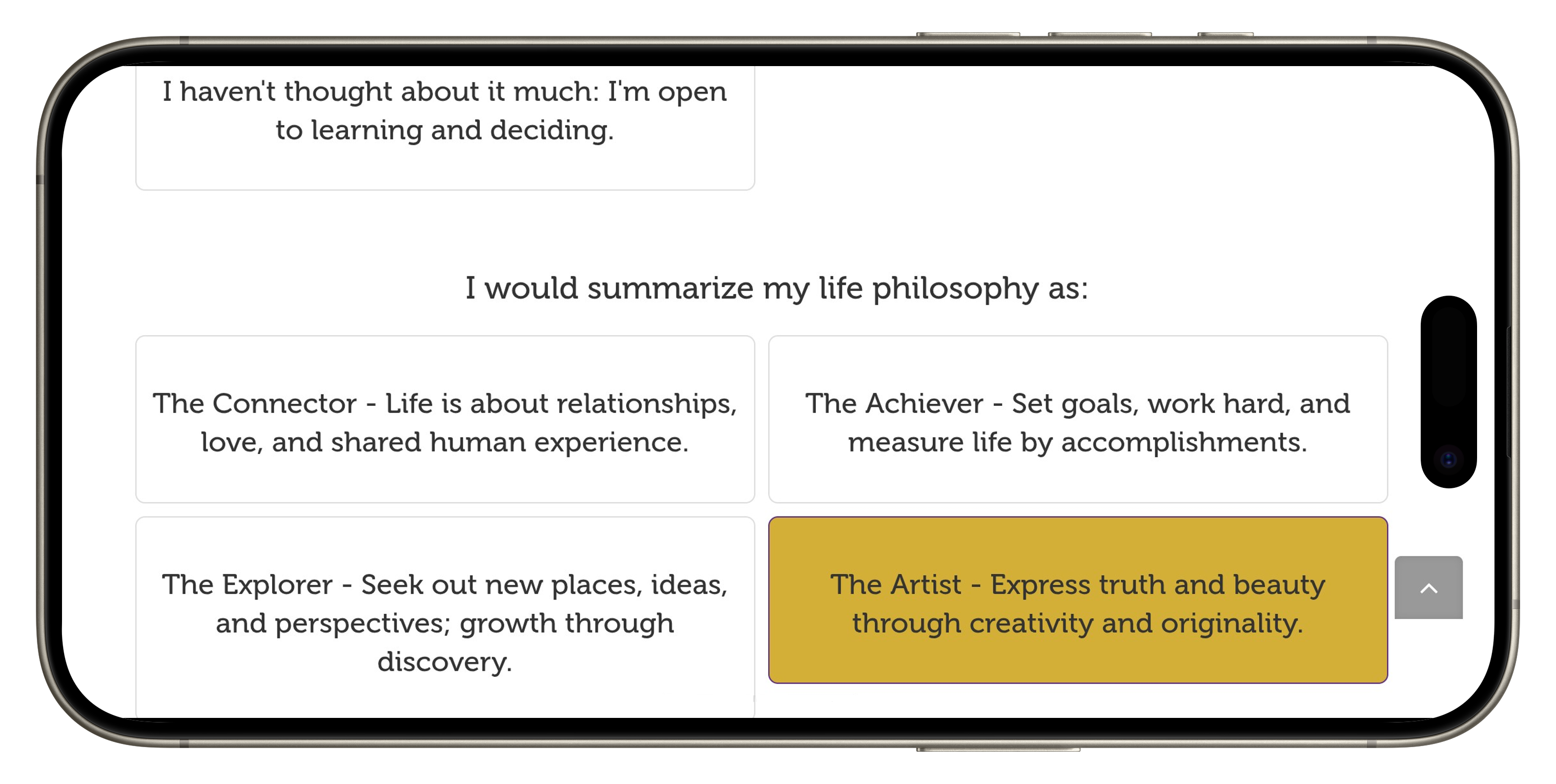 Dive into seven deep dimensions of your soul, ranging from values and purpose to identity and emotion. Each question is crafted to awaken introspection and better understand yourself.